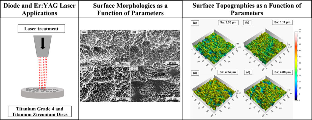 The effects of diode and Er:YAG laser applications on the surface topography of titanium grade 4 and titanium zirconium discs with sand-blasted and acid-etched (SLA) surfaces