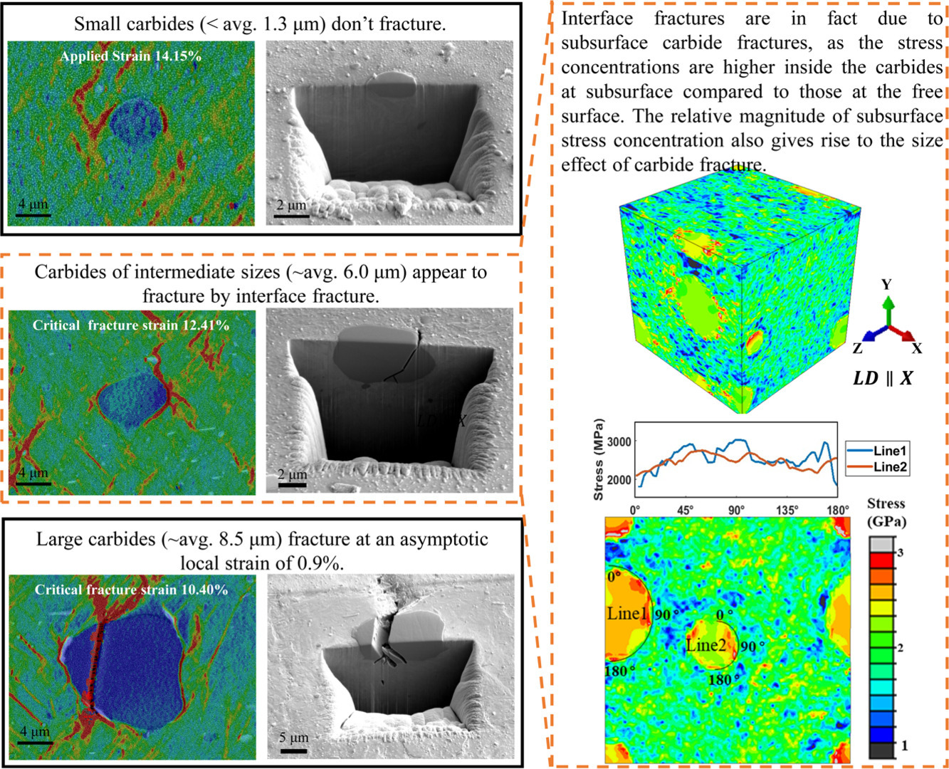 Quantifying carbide size effects on strain localization and fracture mechanisms in martensitic steels
